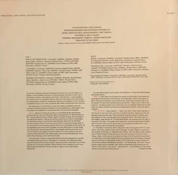 - Mixed By – Bruce Botnick, Joe Zawinul, Wayne Shorter