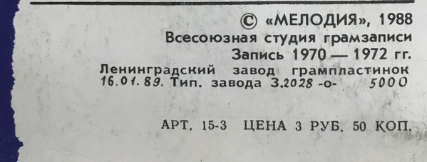 - Pressed By – Ленинградский Завод Грампластинок