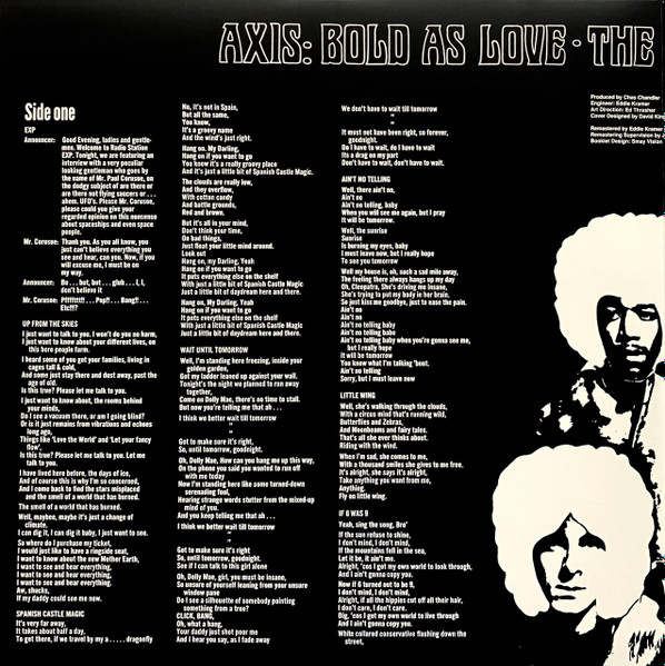 The authorized Hendrix Family edition, 1st LP version digitally remastered from the original 2-track mixdown-master tapes by Jimi's original engineer.