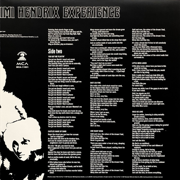 In small print on bottom back cover: All tracks © 1997, 1968 Experience Hendrix, L.L.C., under exclusive license to MCA Records Inc., Universal City, CA 91608.