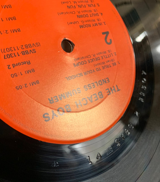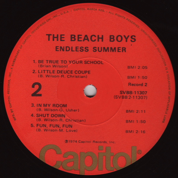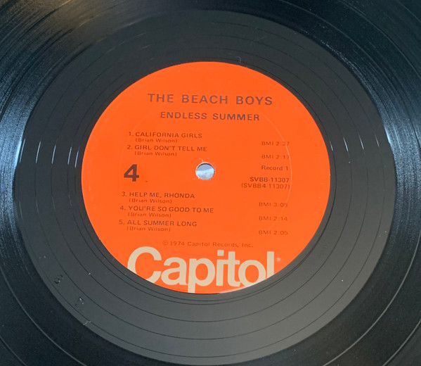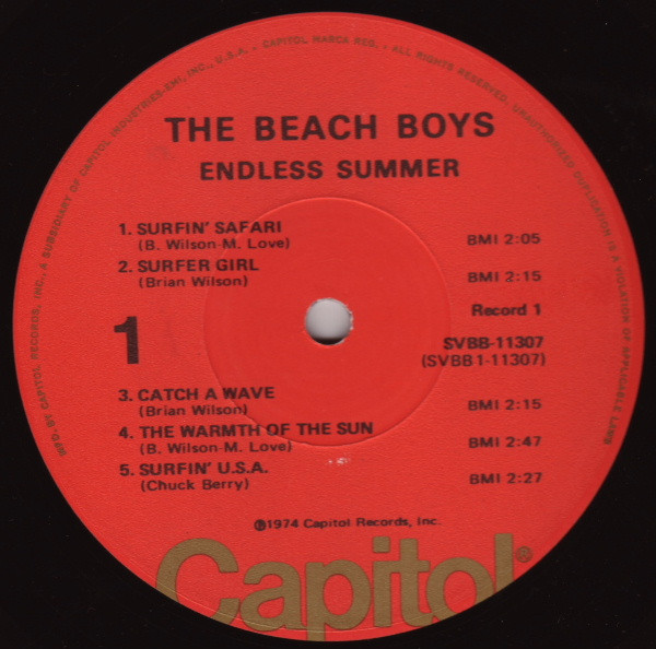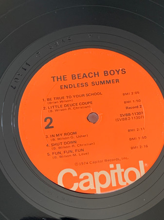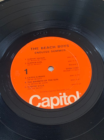 Gatefold sleeve, initial pressings include fold-out poster depicting an airplane flying a Beach Boys banner. Printed on poster - Aircraft: Boeing Stearman Biplane (1933-45) The Beach Boys Endless Summer © 1974 Capitol Records Printed in U.S.A. (SVBB-11307).