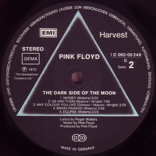 - Misprinted version with A-side labels on both sides: The Dark Side Of The Moon