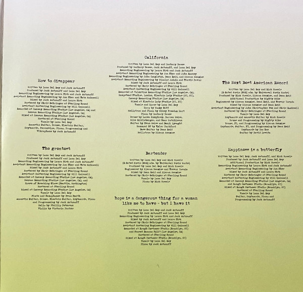 - Producer – Andrew Watt (3) (tracks: 5), Dean Reid (tracks: 10), Happy Perez (tracks: 5), Jack Antonoff (tracks: 1 to 3,10, 11, 13, 14), Kieron Menzies (tracks: 10), Lana Del Rey (tracks: 1 to 3,10 to 14), Rick Nowels (tracks: 10, 12)