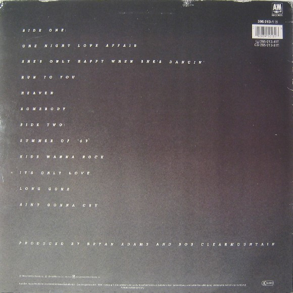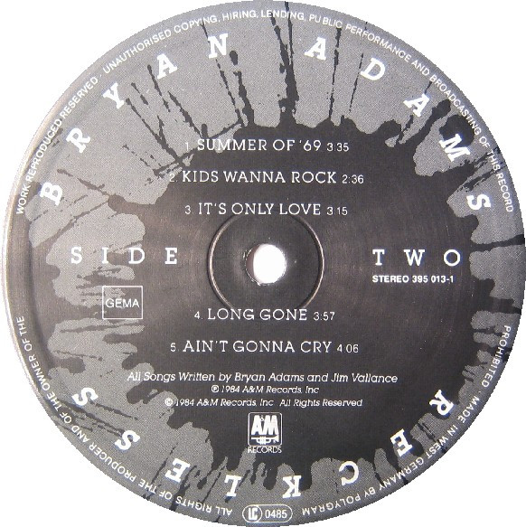 Reissue of Reckless, released after A&M Records changed their European distributor from CBS Records to PolyGram in 1985.