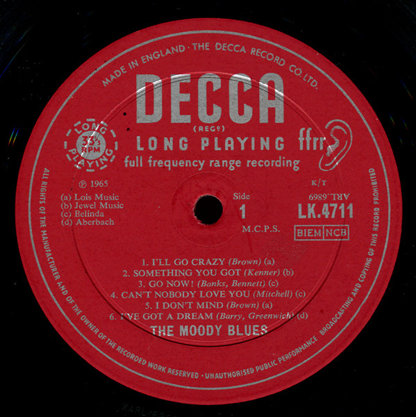 Label rim text reads: Made In England - The Decca Record Co. Ltd.''.