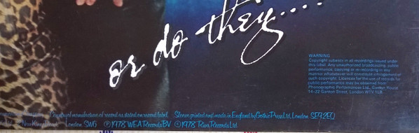 - Pressed By – WEA Records Pressing Plant, West Drayton