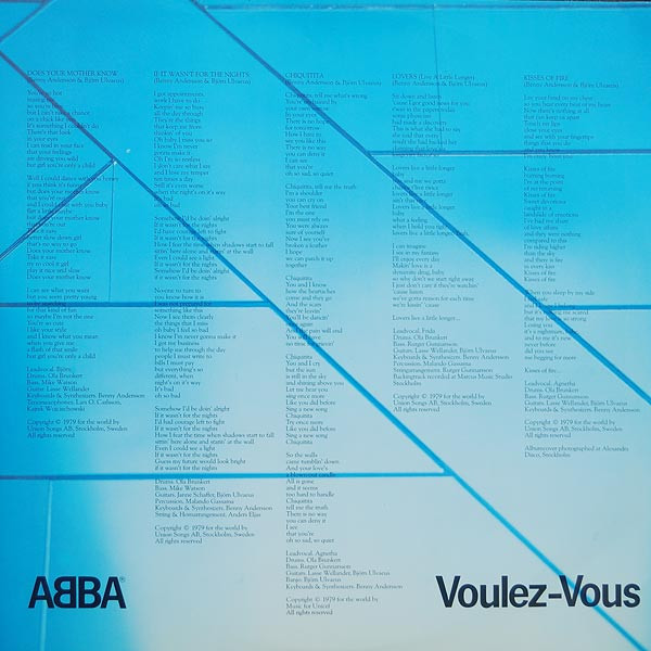 Backing track for "Voulez-Vous" recorded at Criteria Studios, Miami.