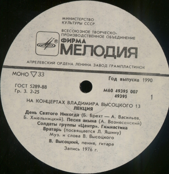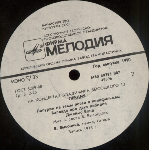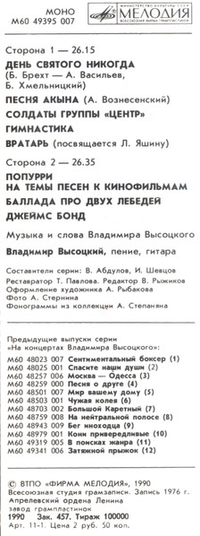 - Lyrics By – В. Высоцкий* (tracks: A3 to B3)