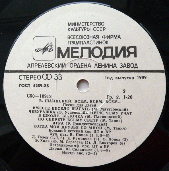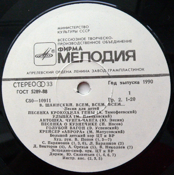 - Choir – Большой Детский Хор ЦТ И ВР* (tracks: A1, A3 To B1, B4 To B8)