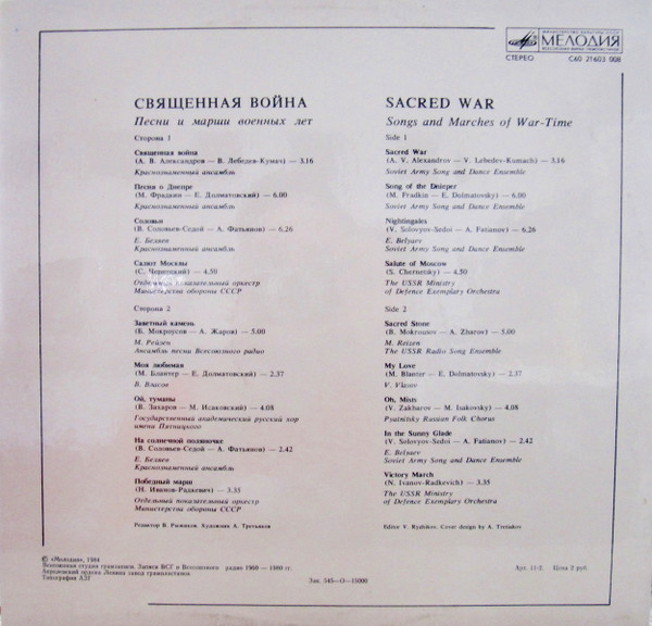 | А1 | Краснознаменный Ансамбль*– | Священная Война | 3:16 |