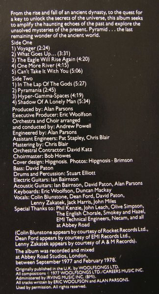 Reissue of Pyramid after the shift of Arista distribution from EMI to Ariola. Editions pressed after 1981 show a bass clef embossment in the B-side label area.