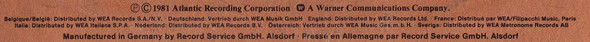 Belgique/Belgie: Distributed By Wea Records S.A./N.V.