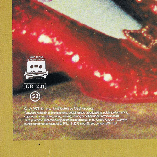 "Original sound recording made by Jet Records Inc. CBS Records are the exclusive licensees in the UK" printed on labels.