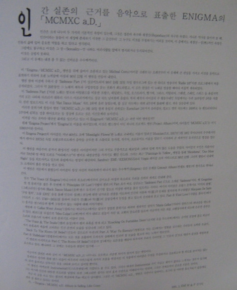 Album contains text of songs in English and Korean language.