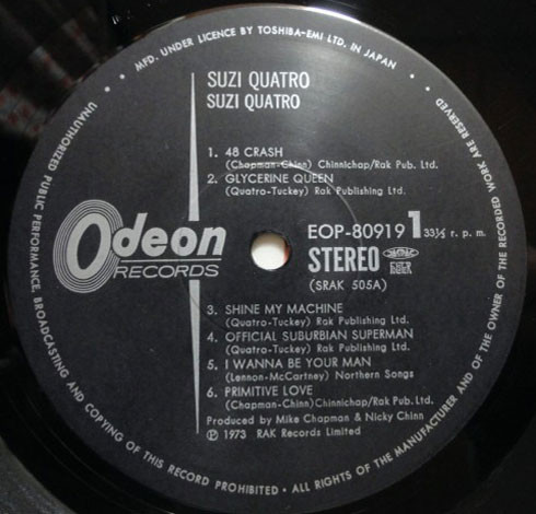 Manufactured by Toshiba EMI, Ltd., Japan