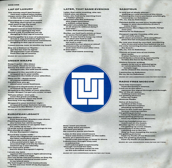 - Written-By – Ian Anderson (tracks: All), Martin Barre (tracks: A1; A4), Peter Vettese* (tracks: A1; A2; A4; B4; B5; B6)