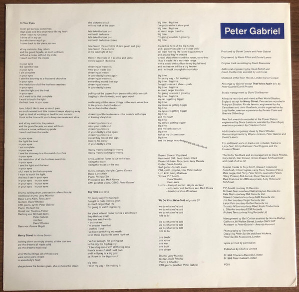 © 1986 Peter Gabriel Limited