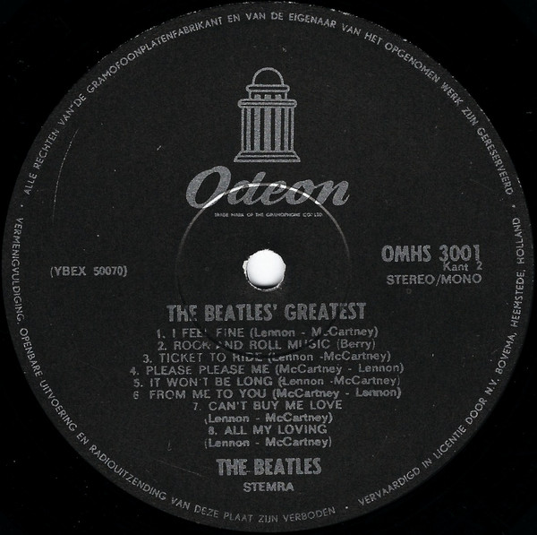 Mid 70s pressing, STEMRA version (bottom of label under "The Beatles")