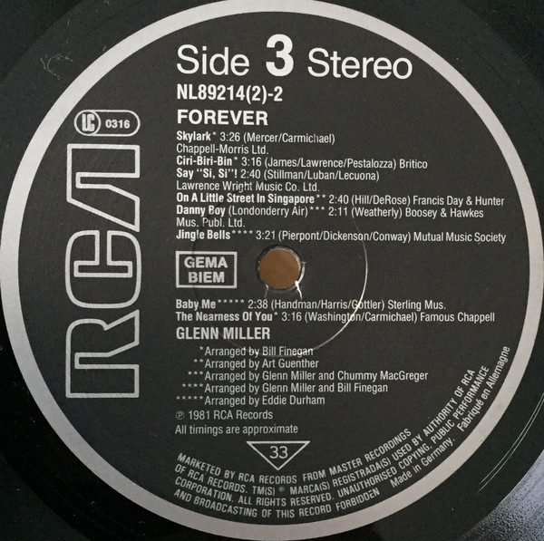 Very similar to Glenn Miller - Forever but differs from label (the way Right Societies are entered, GEMA BIEM or BIEM GEMA