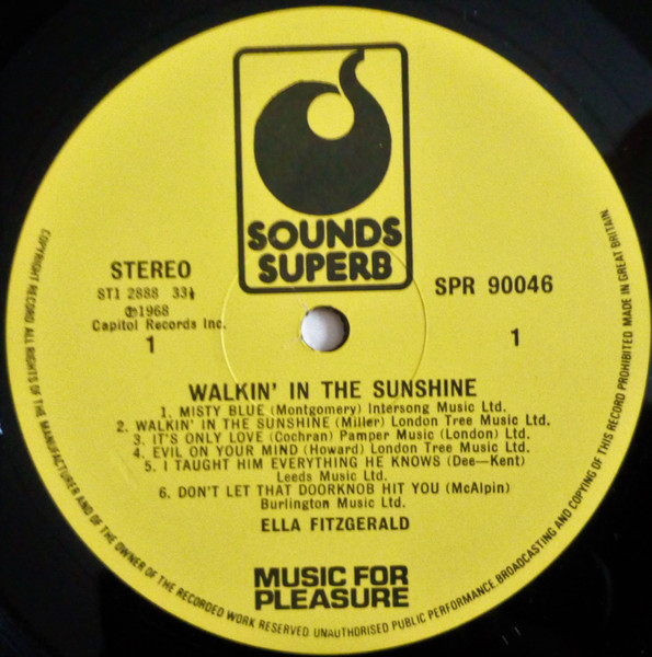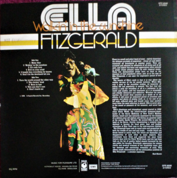 Variant to Ella Fitzgerald - Walkin' In The Sunshine due to absence of text directly above the EMI logo at bottom of back cover.