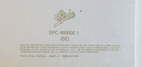 Similar to George Michael - Faith --> Printed by Indugraf Madrid, S.A. - Sleeve, no printing statement - Inner sleeve.