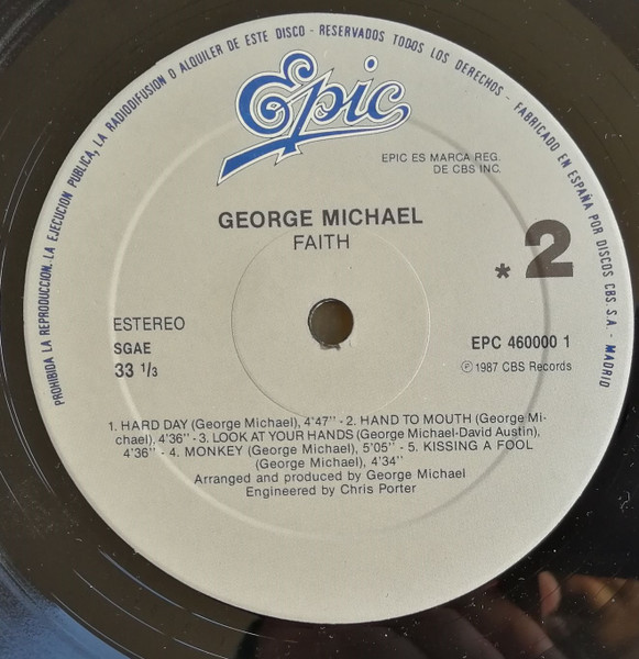 With a sticker where you can read: George Michael. Primer LP en solitario: FAITH. También incluye "I Want Your Sex".