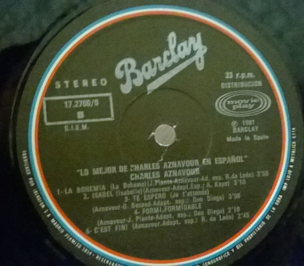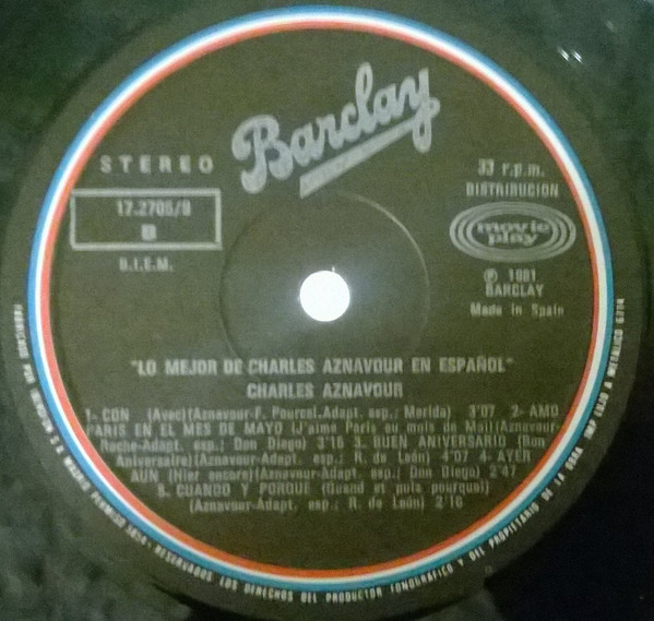 Title on labels: "Lo Mejor De Charles Aznavour En Español"