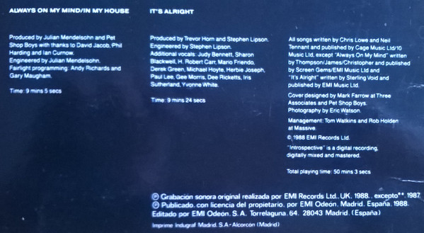 Producer – Julian Mendelsohn, Pet Shop Boys