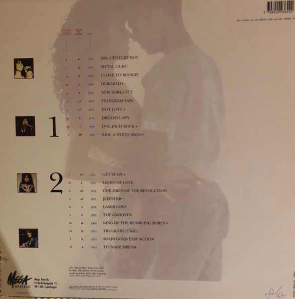 Includes an inner sleeve with a photo of Marc Bolan on one side and some words from John Bramley on the other.