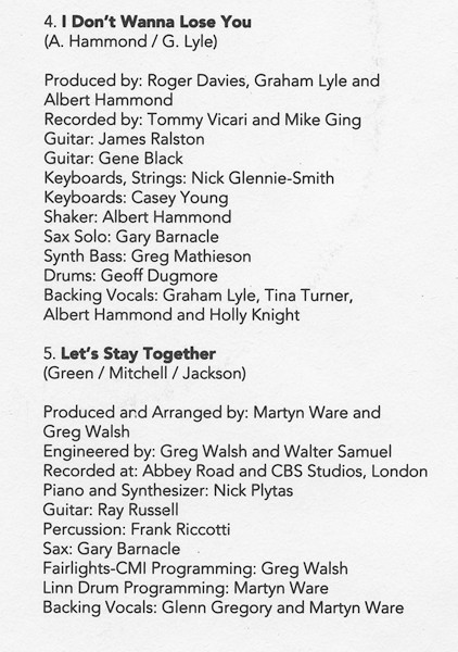 Let's Stay Together Backing Vocals – Glenn Gregory