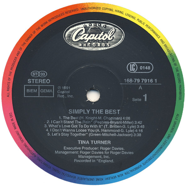 ℗ & © 1991 Capitol Rec., Inc. / Made in EEC