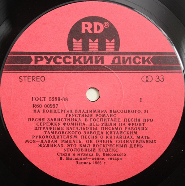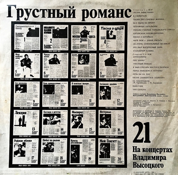 - Music By, Lyrics By – В. Высоцкий* (tracks: A1 to B7, B9, B10)