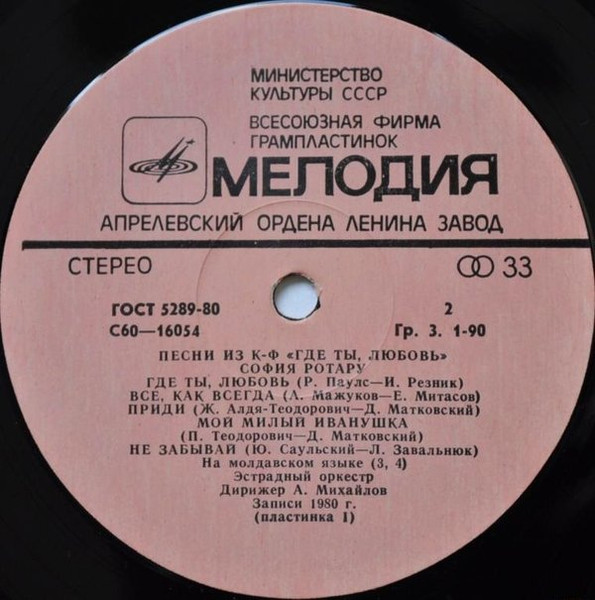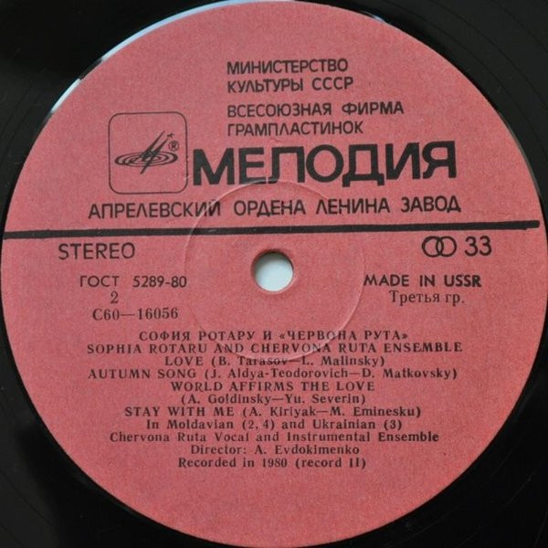 - Record Company – Всесоюзная Студия Грамзаписи