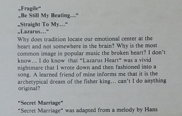 - Music By, Lyrics By, Arranged By – Sting (tracks: A1 to B5)