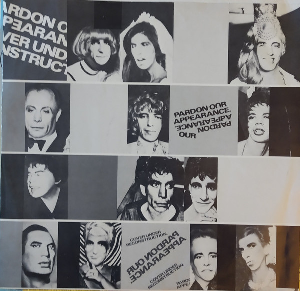 Inner sleeve has a mix of black & white photos of Stones in wigs and out of wig, with the words "Pardon our appearance. Cover under reconstruction."