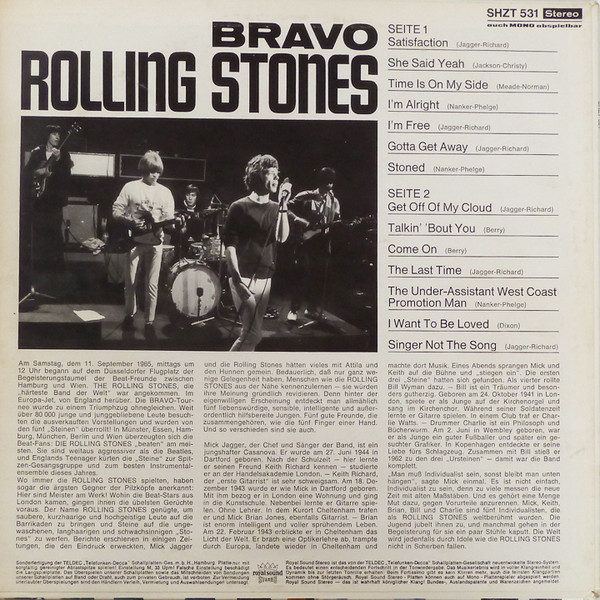 Title on cover as above; title on labels 'Bravo!! The Rolling Stones'