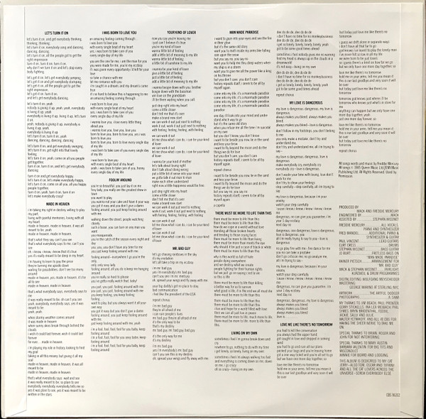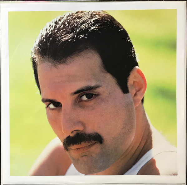 Issued with a 12"x12" double sided full color inner sleeve, one side has printed lyrics and credit, the other a photo of Freddie (feat. white wide frame)