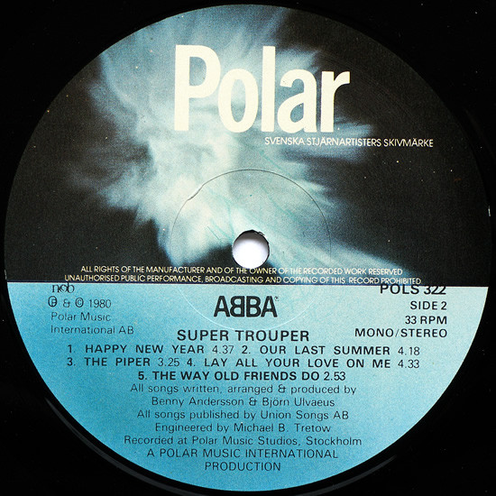 The applause at the end of “The Way Old Friends Do” leads into the locked groove and is repeated endlessly until the tone arm will be lifted off.