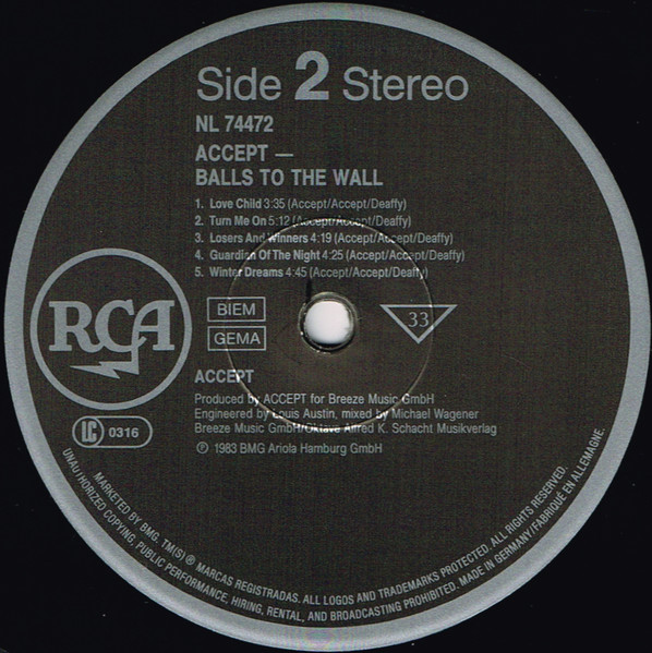 Recorded and mixed at Dierks Studios, Cologne West Germany, July/August, 1983.