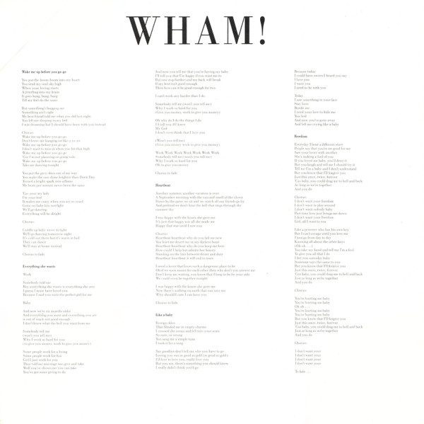 - Written-By – Andrew Ridgeley (tracks: B4), George Michael (tracks: A1 to B1, B3, B4), The Isley Brothers (tracks: B2)
