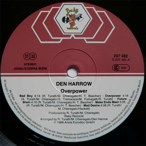 © ℗ 1985 Baby Records - via Timavo, 34 Milano-Italy (on the back cover)