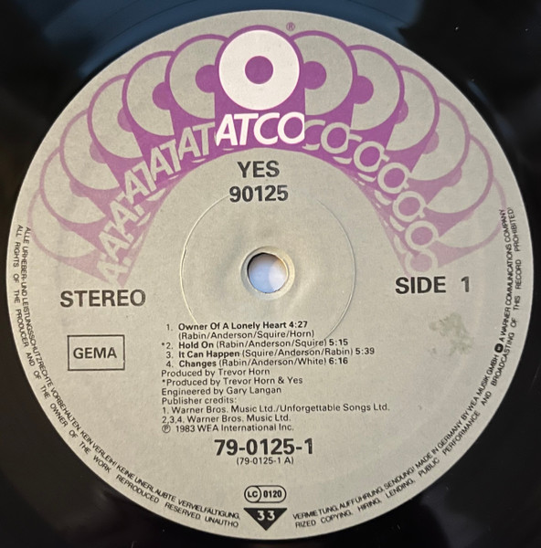 - Producer – Trevor Horn, Yes (tracks: A2)