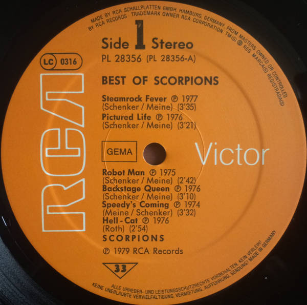 Made By RCA Schallplatten GmbH, Hamburg, Germany, From Masters Owned Or Controlled By RCA Records