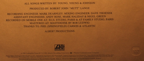℗© 1981 Atlantic Recording Corporation (On the rear)