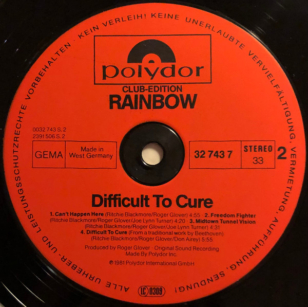 "Difficult To Cure (Beethoven's Ninth)" (on back cover)