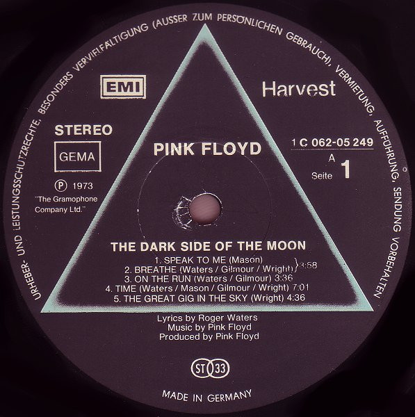 - Misprinted version with A-side labels on both sides: The Dark Side Of The Moon