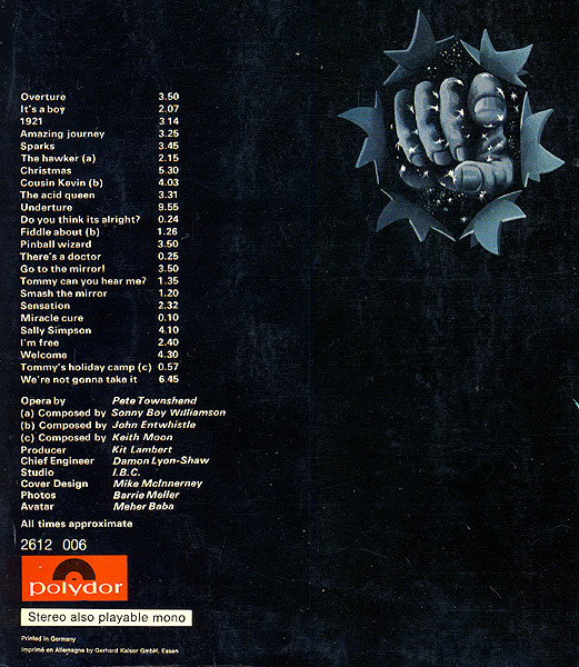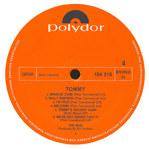 - Composed By – Pete Townshend (tracks: A1 to A5, B1, B3, B4, C1, C3 to D4, D6)