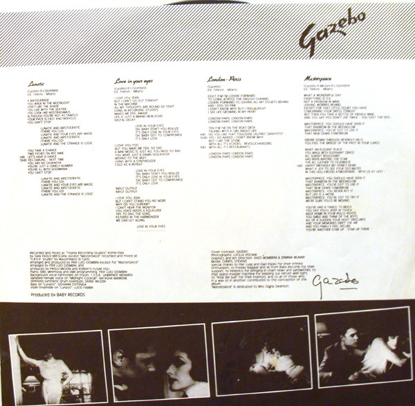 - Written-By – Gazebo, P. Micioni* (tracks: A4), P.L. Giombini* (tracks: A1, A2, A4 to B4)