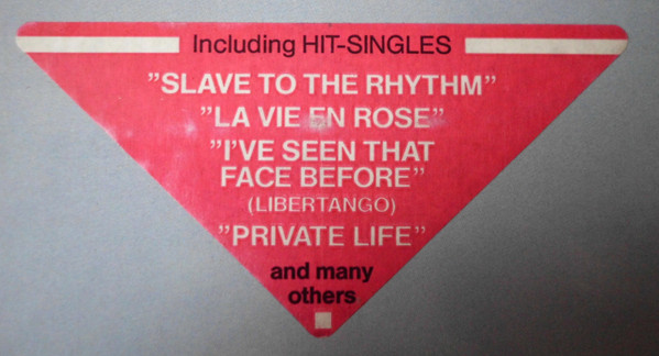 Including hit-singles "Slave To The Rhythm" "La Vie En Rose" "I've Seen That Face Before" (Libertango) "Private Life" and many others