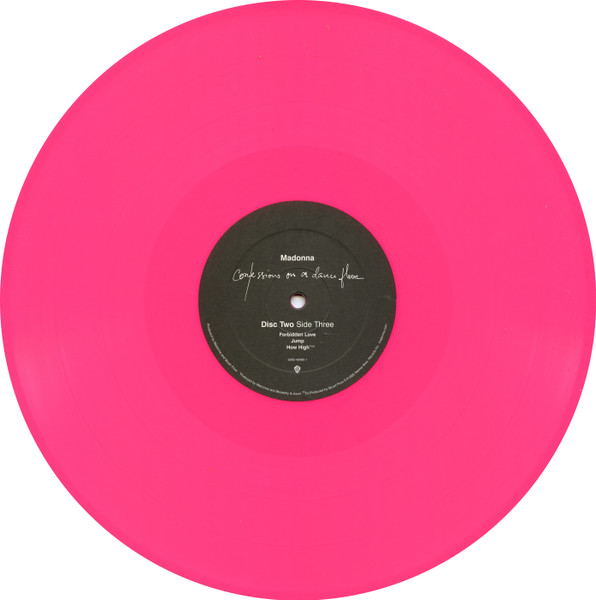 This original European pink vinyl edition has a small Warner logo as well as a LC on the back cover besides the barcode. The 2019 EU repress with the same catalog number, Confessions On A Dance Floor, has a blobby and bigger, new warner logo besides the barcode, and there is no LC beside it.